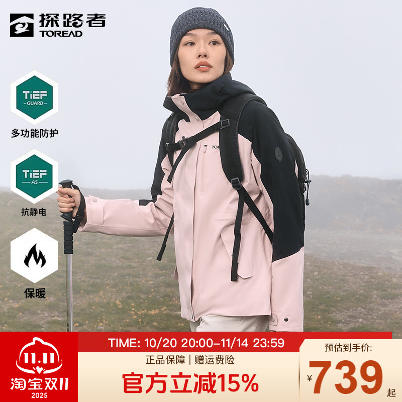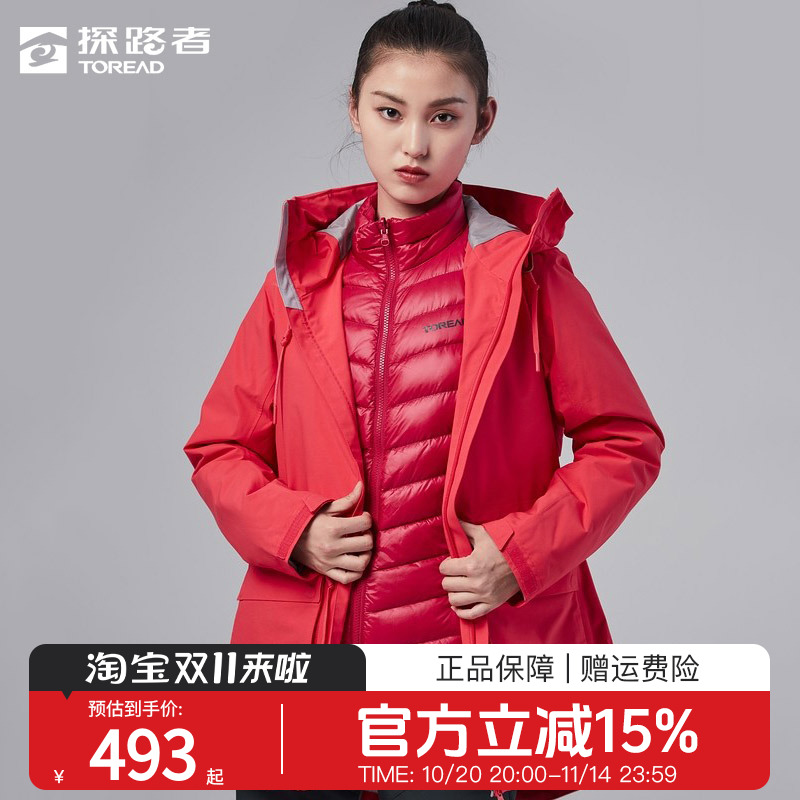 探路者套羽绒冲锋衣女冬户外防风可拆卸鹅绒保暖外套TAWWAM92514