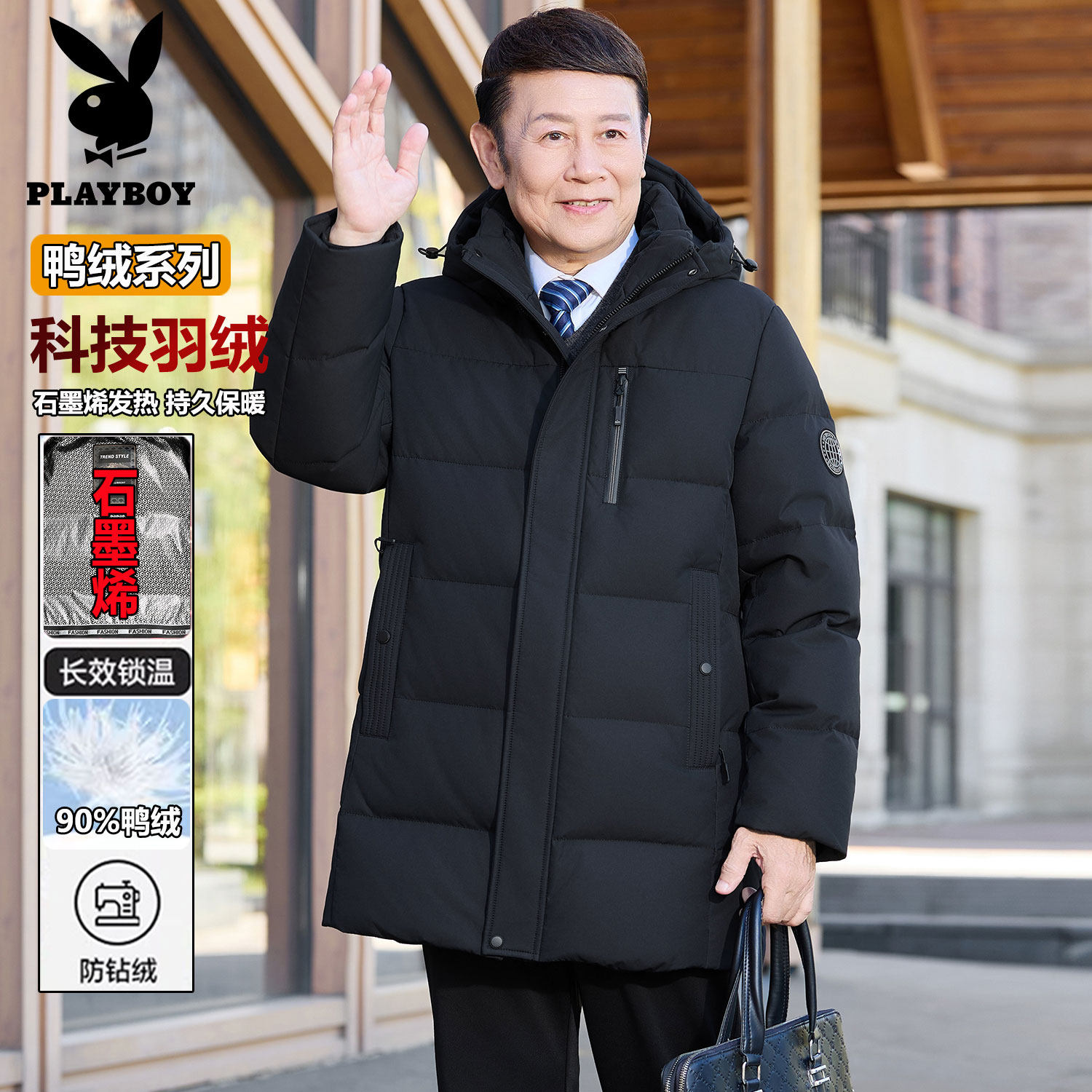 花花公子中老年羽绒服男中长款加厚爸爸冬装2025新款父亲保暖外套