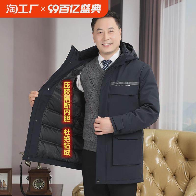 爸爸羽绒服冬季中长款加厚中年男士父亲冬装50岁中老年人保暖外套