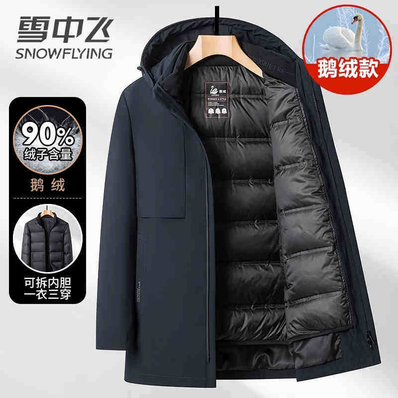 雪中飞鹅绒服男父亲中长款户外中老年脱卸内胆新款羽绒服一衣三穿