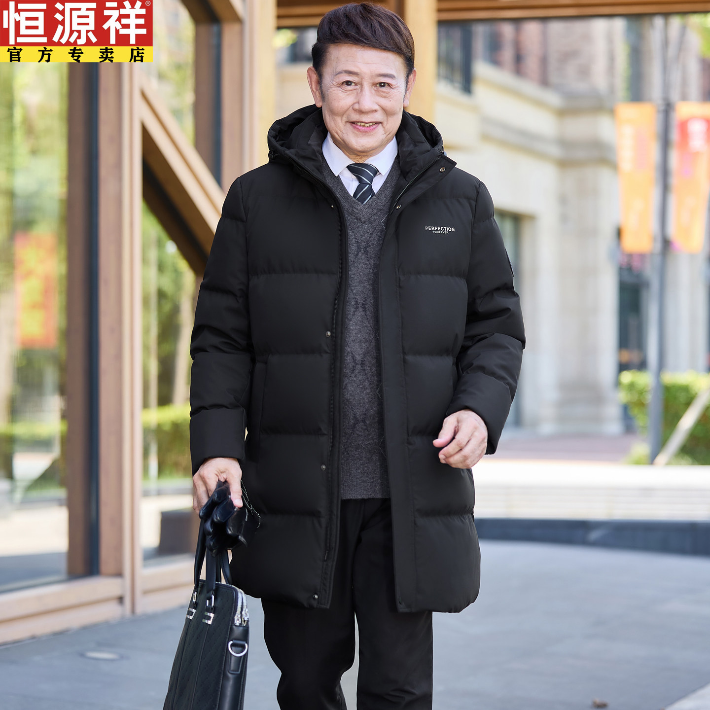 恒源祥中老年羽绒服男中长款加厚保暖白鸭绒爸爸装冬季父亲外套男