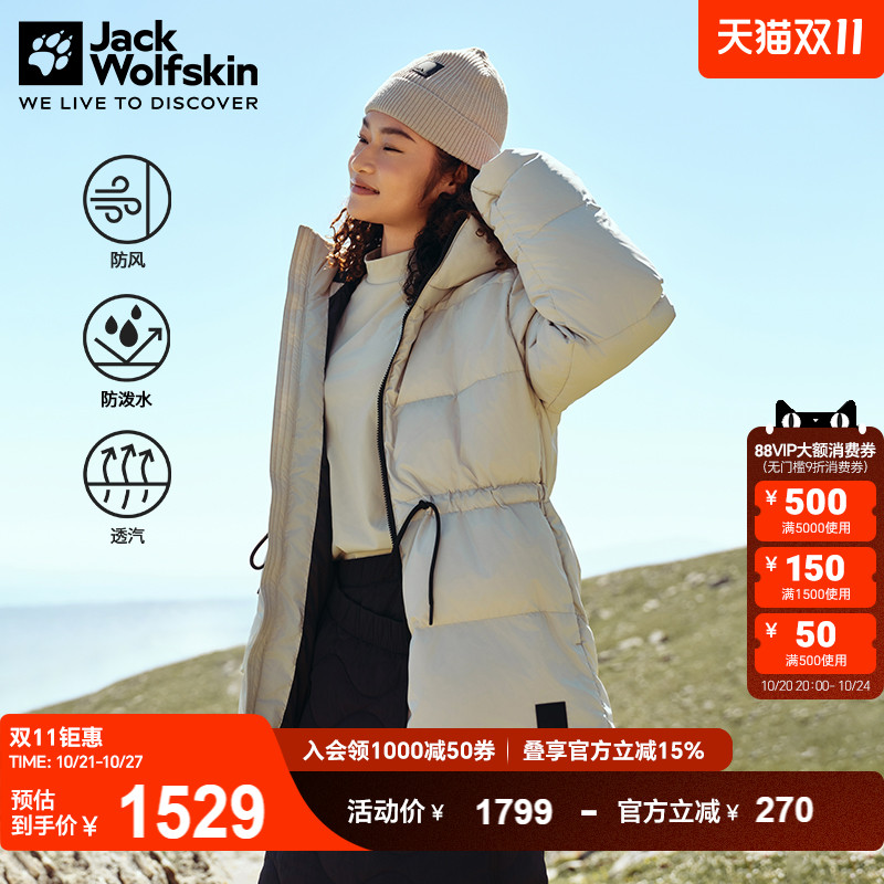 JackWolfskin狼爪羽绒服女秋冬户外休闲中长款鹅绒外套A60200A