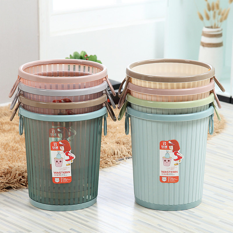厨房卫生家居塑料纸篓 办公室垃圾桶 大号压圈透明雅色塑料垃圾桶