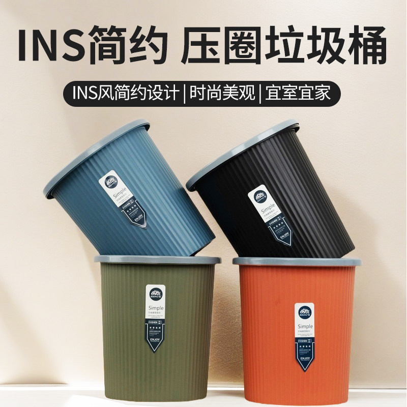 大容量家用高颜值客厅收纳桶卧室厨房卫生间压圈纸篓办公室垃圾桶