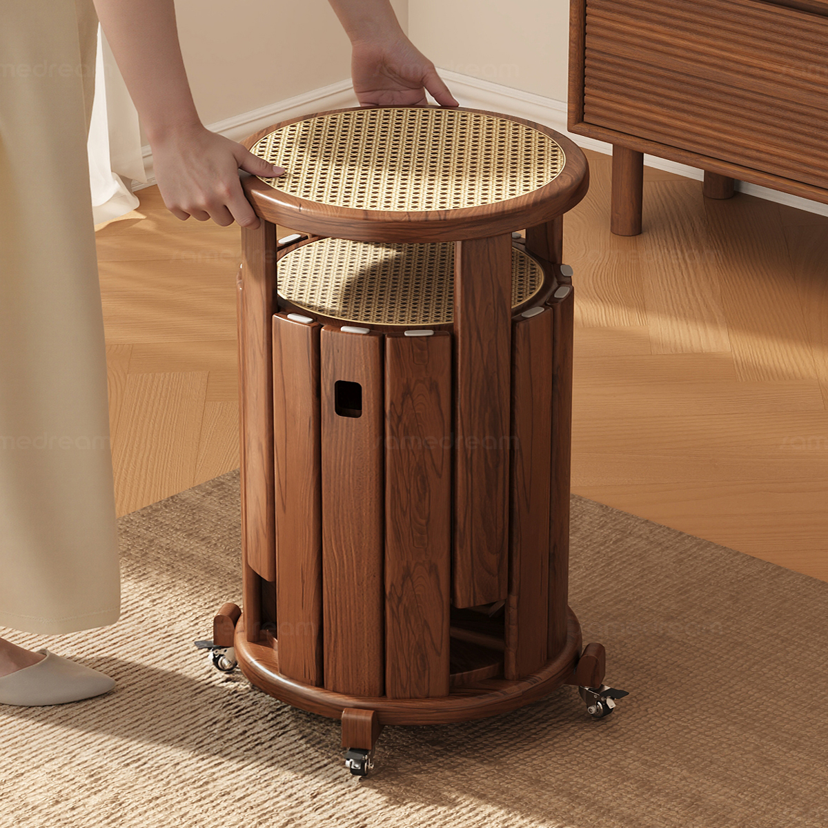 三梦实木叠叠乐凳子家用可叠放中古风藤编组合凳堆叠备用折叠餐凳