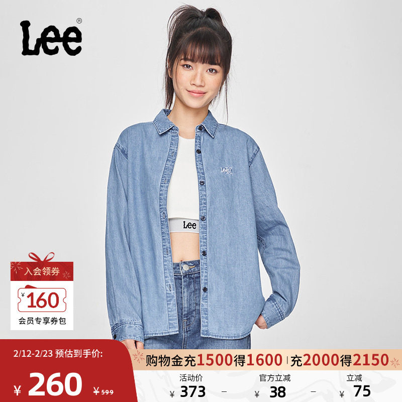 Lee25新品舒适版翻领小刺绣Logo浅蓝色女长袖牛仔衬衫休闲潮流