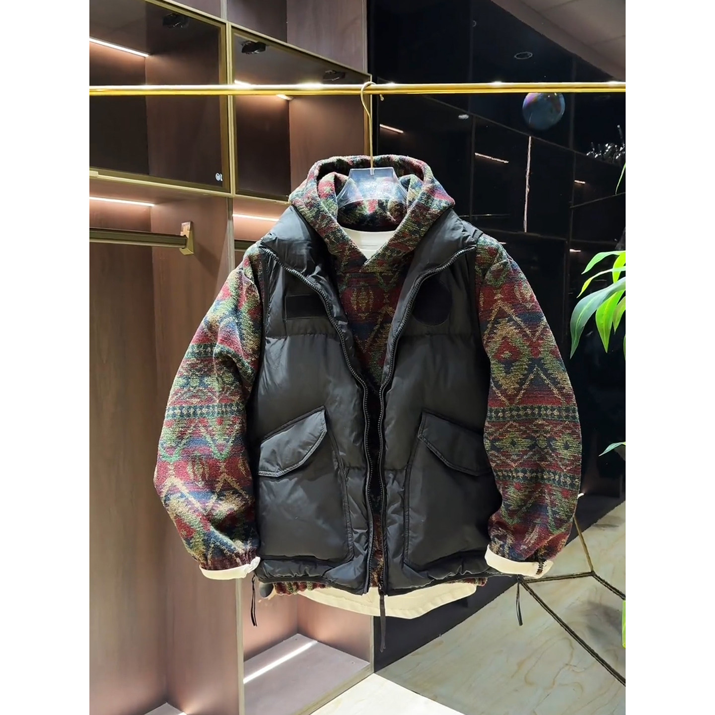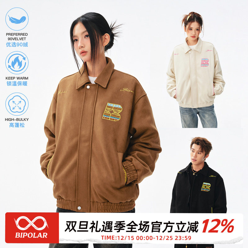 BIPOLAR民族风翻领仿麂皮夹克羽绒服休闲秋冬潮流保暖上衣外套男