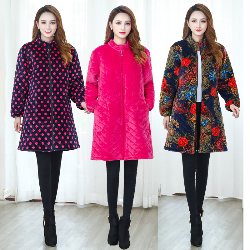 秋冬季民族风外穿罩衣女长袖加厚防寒拉链棉衣外套居家上班工作服