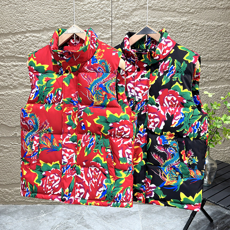 马甲男装秋冬季潮流民族风东北大花马夹网红男女保暖背心外套坎肩