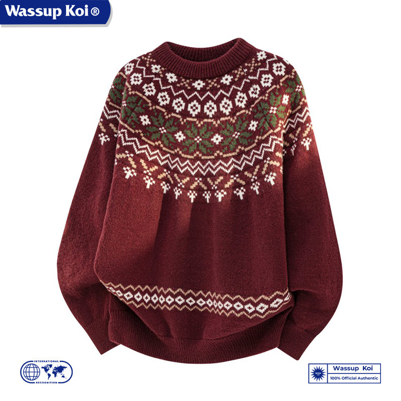 WASSUP KOI费尔岛民族风圆领毛衣男秋冬季保暖百搭情侣针织衫外套