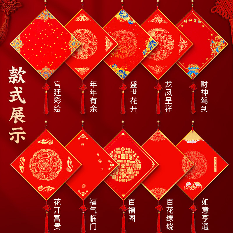 2026年马年新款福字红纸万年红空白福卡斗方挂件对联专用纸春联纸自写红色洒金福卡蜡染宣纸毛笔字书法作品纸