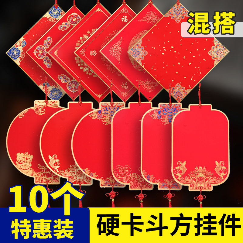 2026年新款木质福字斗方福卡宣纸挂件万年红洒金空白自写灯笼文创diy书法作品红纸对联春联新春装饰挂饰马手