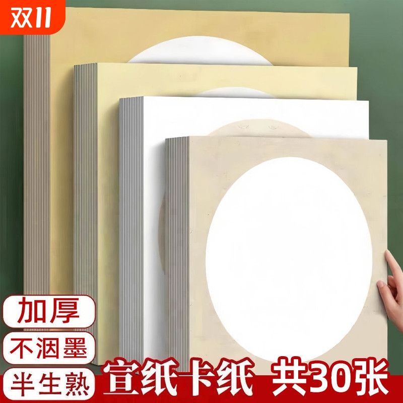 生宣国画卡纸30张加厚宣纸镜片熟宣半生熟美术写生纸工笔画圆形方形空白全白书法作品纸纸儿童画软批发