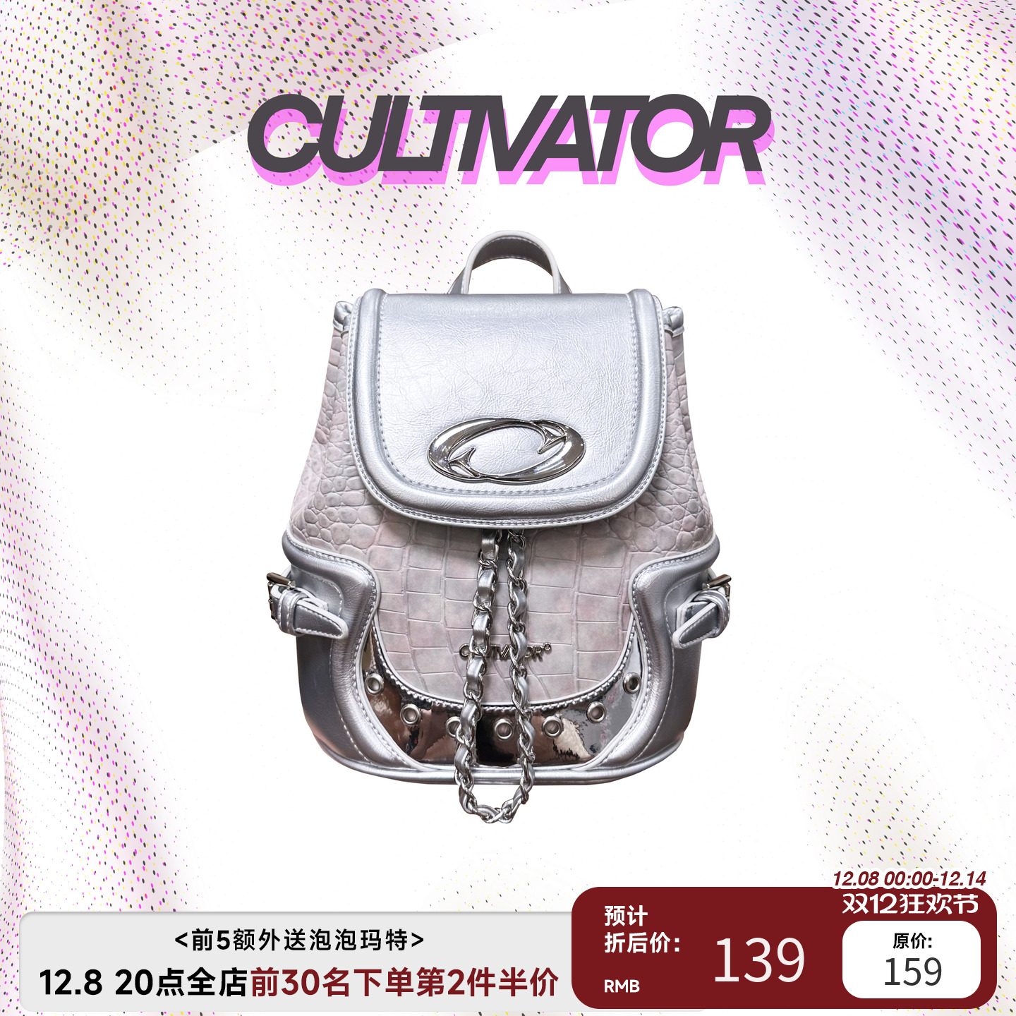 Cultivator原创小众欧美千禧辣妹雾粉色鳄鱼纹迷你双肩包背包新款