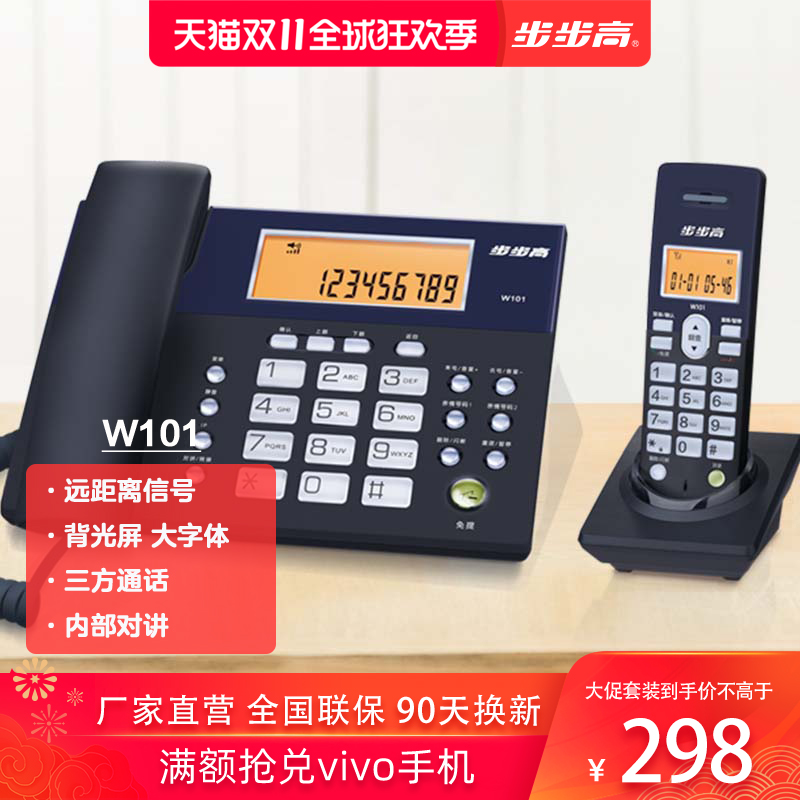 步步高无绳电话座机家用办公室无线W263固定电话机子母机一拖一二
