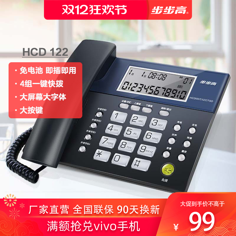 步步高BBK电话座机家用办公室电话机有线固定电话固话免电池122