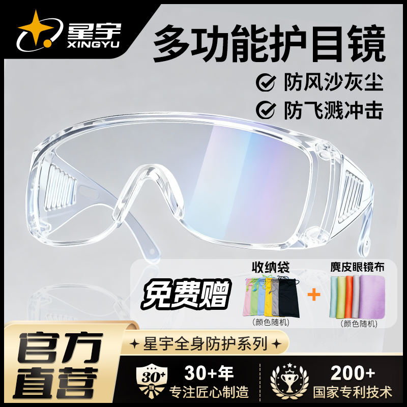 防护眼镜防雾防尘防风沙防灰尘护目镜男女劳保防飞溅工业防护目镜