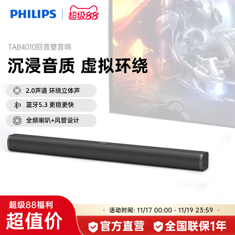 飞利浦TAB4010回音壁电视扬声器家庭影院蓝牙音箱台式电脑2.0音响