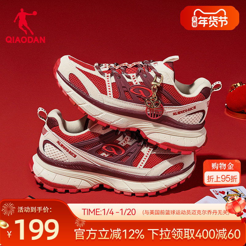乔丹开元V3女休闲鞋新年款红色鞋子运动鞋潮流网面厚底老爹鞋女鞋