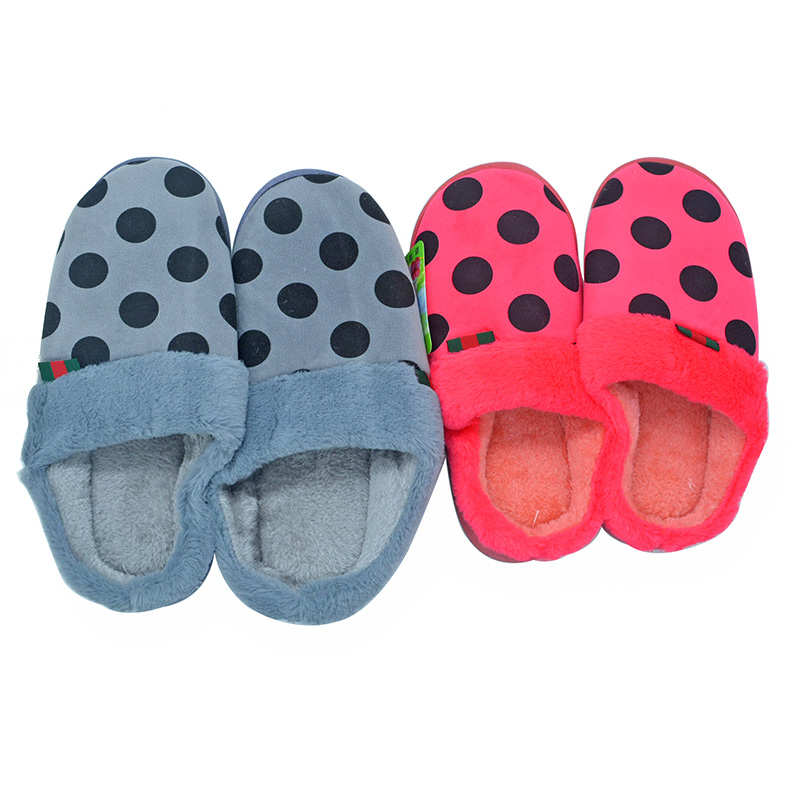 圆点棉拖鞋 男女式家居鞋 厚底包跟冬季保暖鞋 冬季室内防滑拖鞋