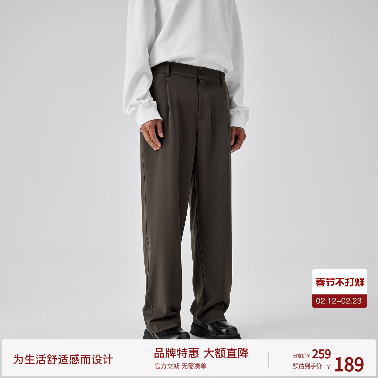 ONEARTS咖啡色西裤男秋垂坠高级感cleanfit直筒西装裤男商务正装