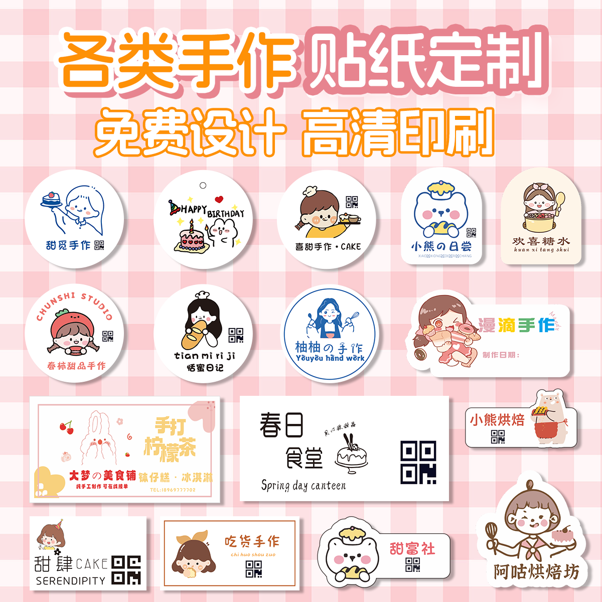 烘培贴纸手作贴纸不干胶定制标签定制奶茶贴甜品标签蛋糕贴纸定制