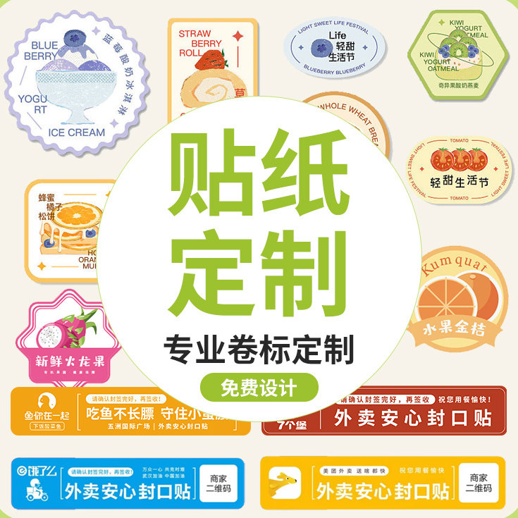 不干胶贴纸定制logo标签订制做广告自粘二维码水果奶茶商标打印