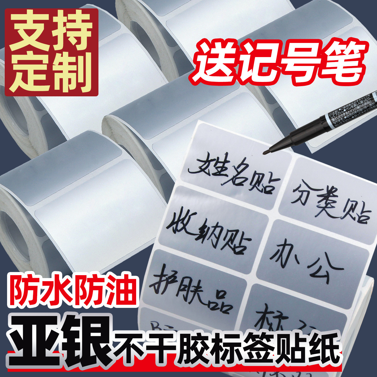亚银标签贴纸手写防水油自粘家用收纳冰箱冷冻厨房调料食品留样分类标记号化妆品日期口取纸可粘贴不干胶定制