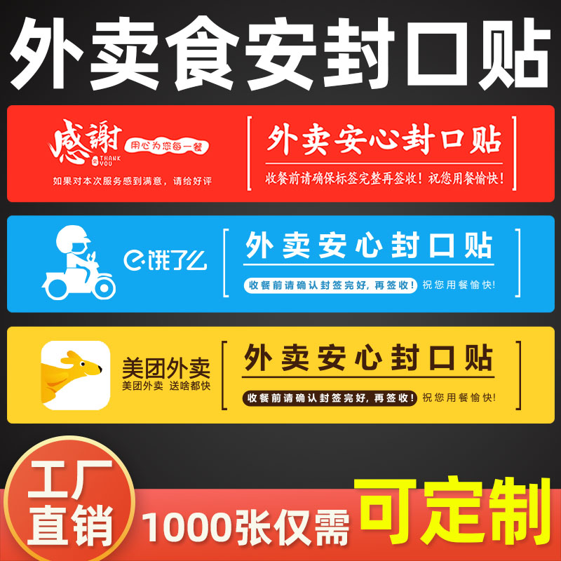 外卖封口贴封签美团饿了么食安小封签条食品安全安心封条贴纸打包盒打包袋一次性防漏防拆封餐贴不干胶定制