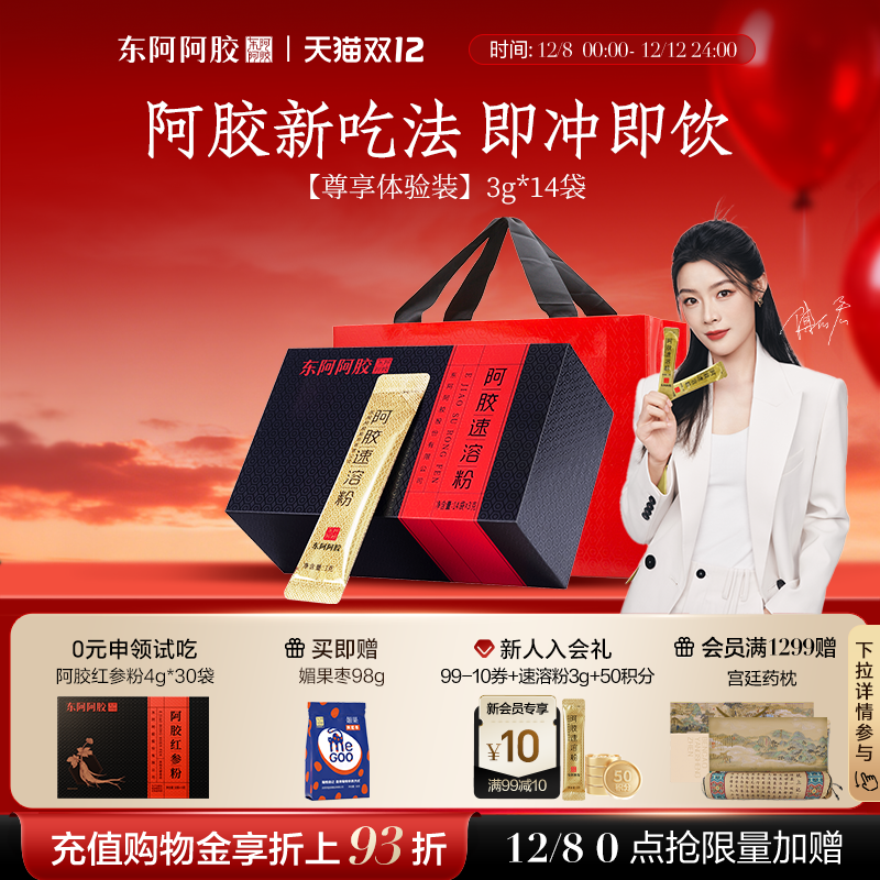 【天猫U先】东阿阿胶桃花姬阿胶糕20g+阿胶速溶粉3g尝鲜装