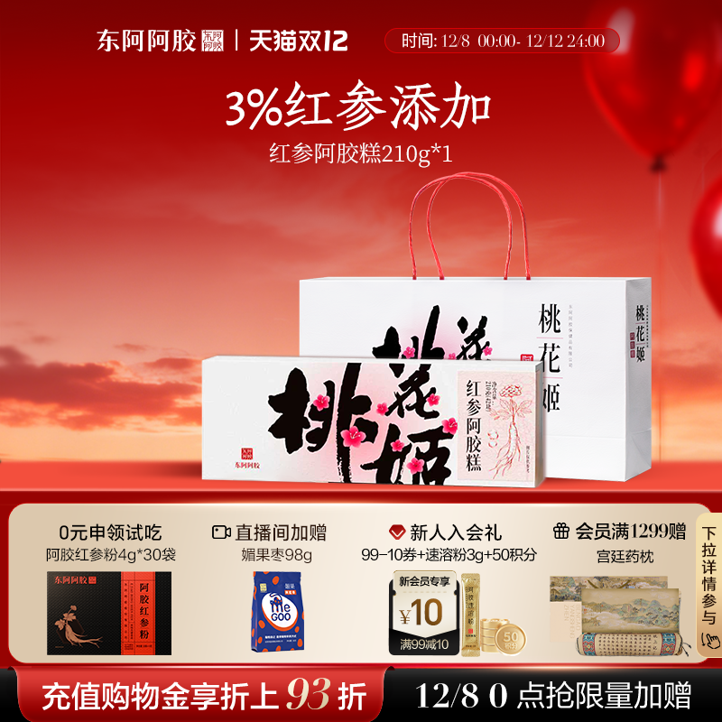 直播同价双12】买4赠1_东阿阿胶桃花姬阿胶糕135片超值囤货装自吃