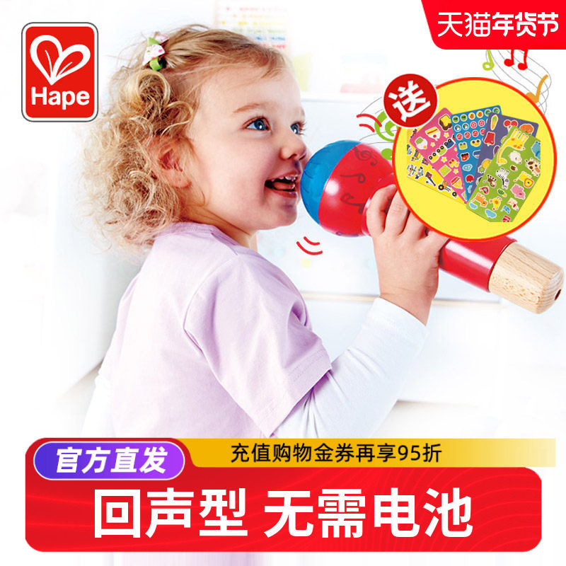 Hape回声麦克风话筒玩具乐器男女孩宝宝唱歌小孩儿童扩音器无线