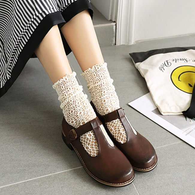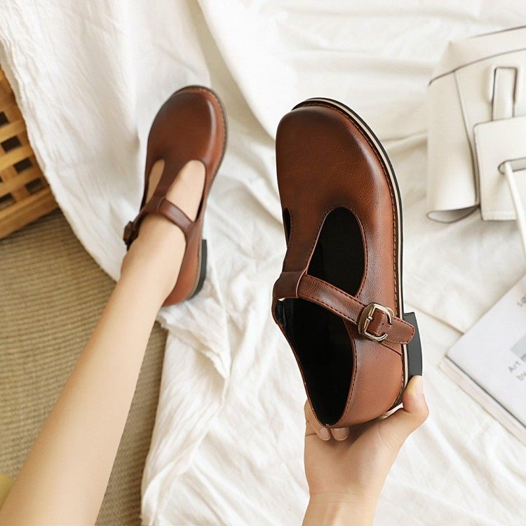 新款叙旧文艺复古女鞋平底森女日系百搭珍单鞋低帮圆头学院风皮鞋