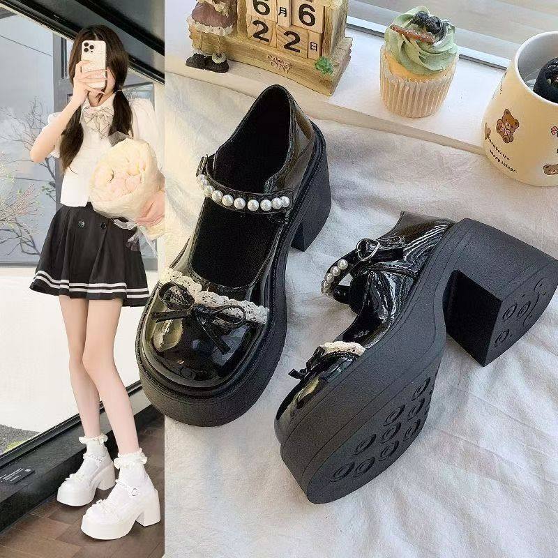厚底增高学院风皮鞋2026春夏新款复古法式珍珠蝴蝶结配裙子单鞋女
