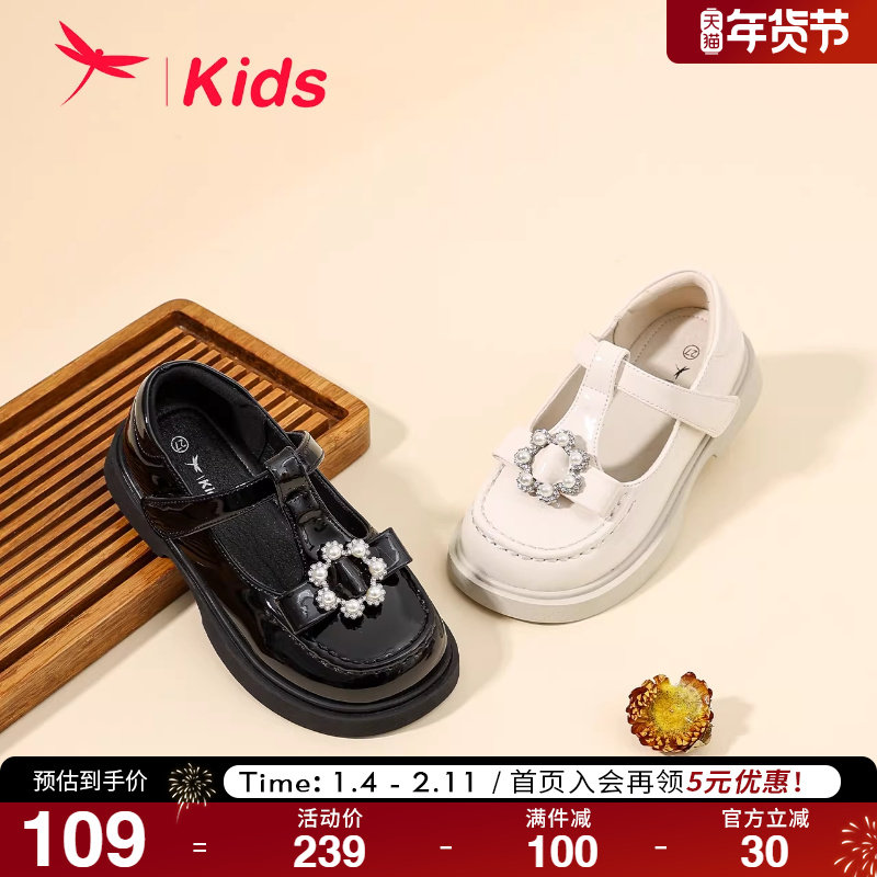 红蜻蜓女童鞋学院风皮鞋春夏新款儿童经典百搭校园深口珍珠公主鞋