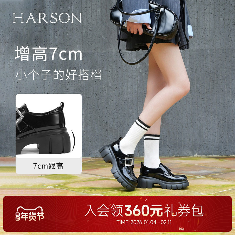 哈森/HARSON【爵士乐福鞋】25秋新款水钻皮带扣厚底学院风皮鞋