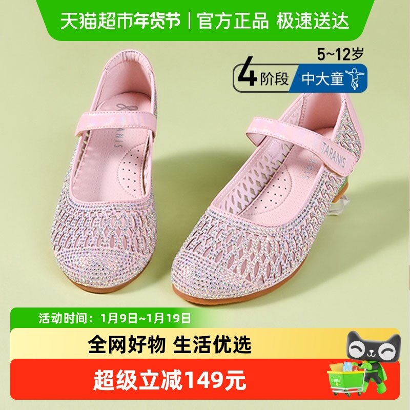 泰兰尼斯kids秋季儿童水晶公主鞋镶钻女童气质学院风皮鞋演出鞋子