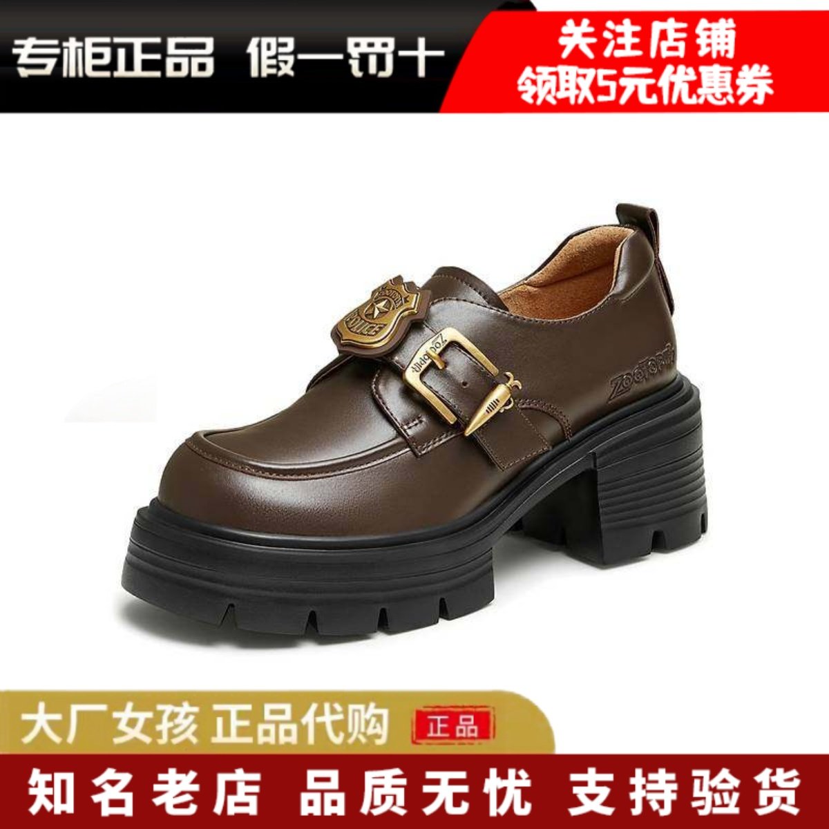 真皮~骄屿复古金属扣乐福鞋新款学院风粗跟小皮鞋英伦风百搭单鞋