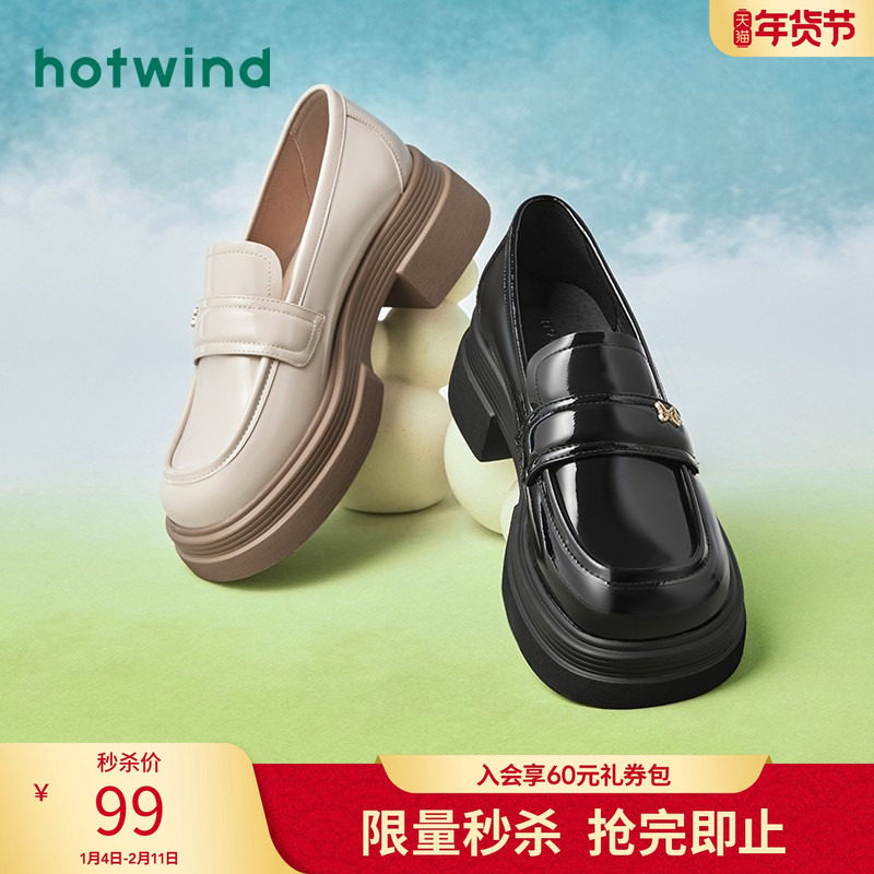 热风黑色小皮鞋女款2026年春季新款增高厚底乐福鞋学院风通勤女鞋
