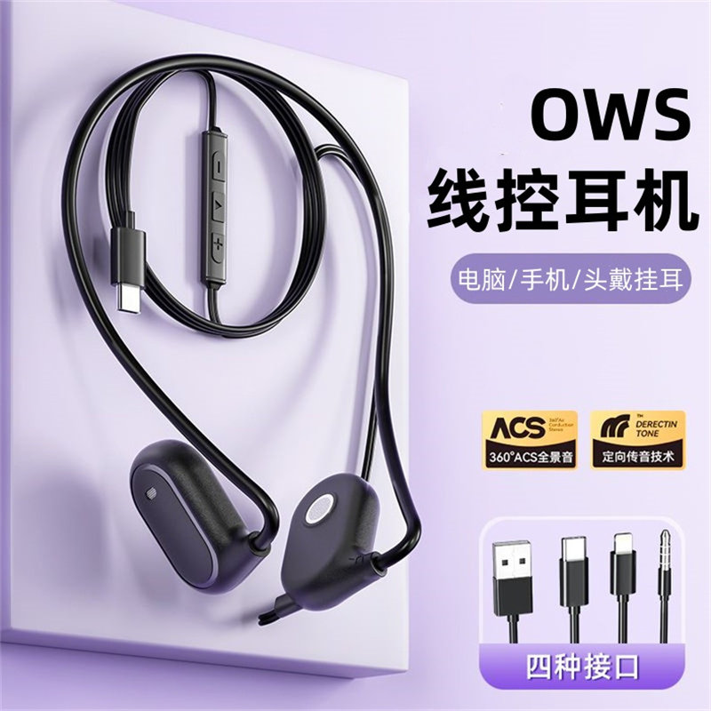 OWS线控耳机有线入耳式电脑手机头戴挂耳四种接口360°全景音线控