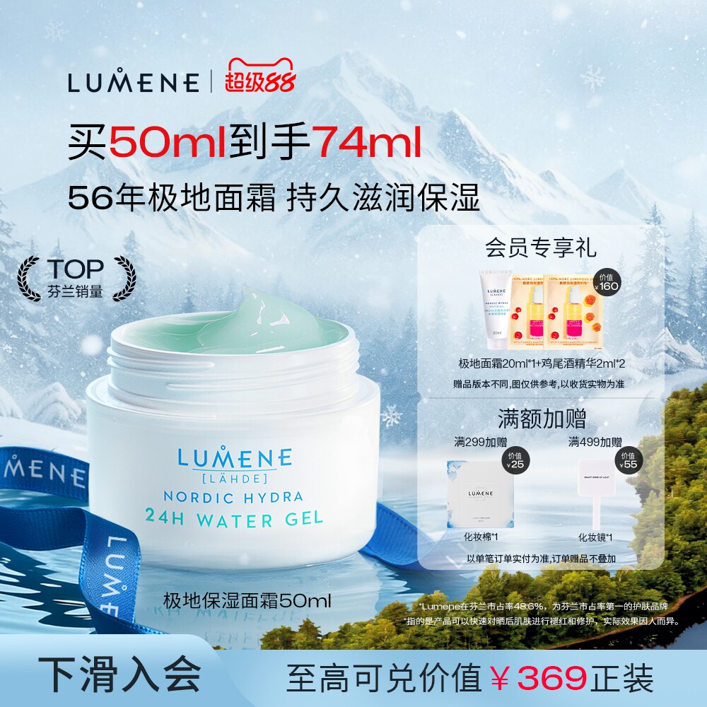 LUMENE优姿婷极地面霜补水换季保湿清爽冰泉天然混油滋润面霜乳液