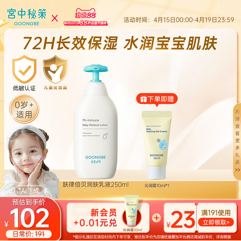 宫中秘策儿童身体乳液250ml宝宝春夏润肤露婴儿保湿滋润旗舰正品