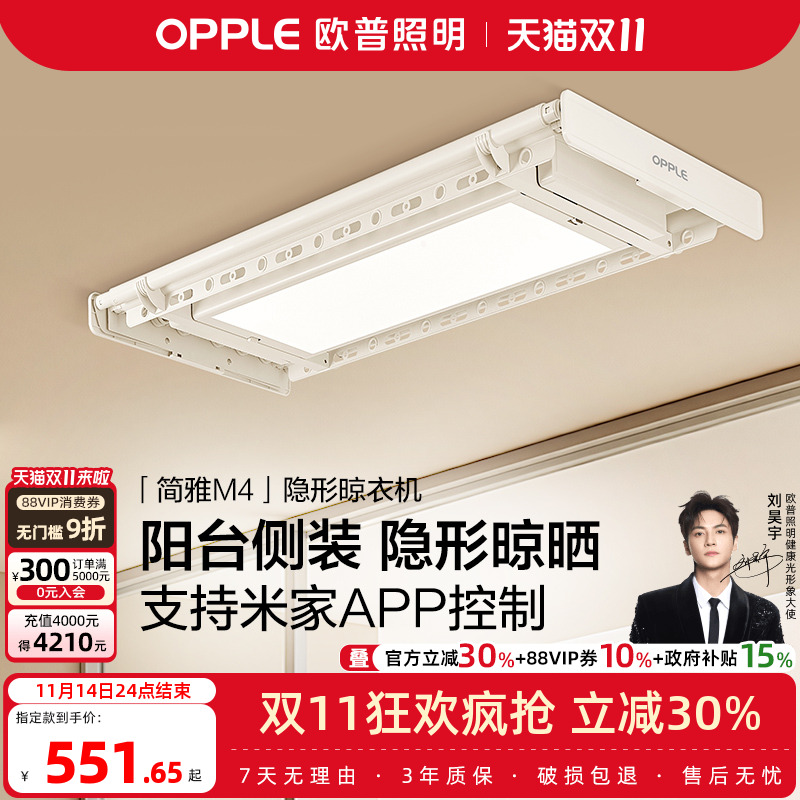 OPPLE电动智能晾衣架阳台家用升降烘干晒衣架自动声控晾衣机