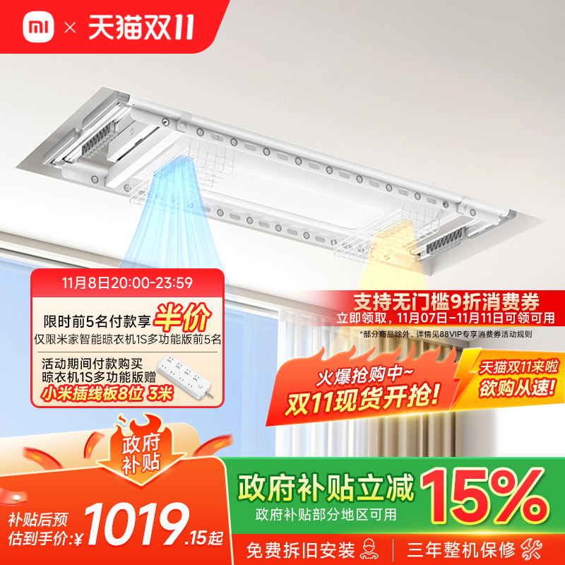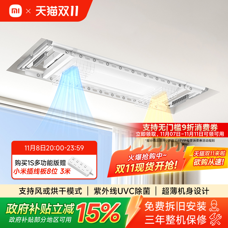 米家智能晾衣机1S多功能电动晾衣架阳台家用折叠烘干除菌小米官旗
