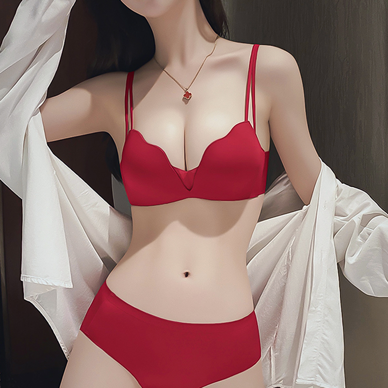 本命年红色内衣套装女小胸聚拢显大性感无钢圈新娘结婚无痕文胸罩
