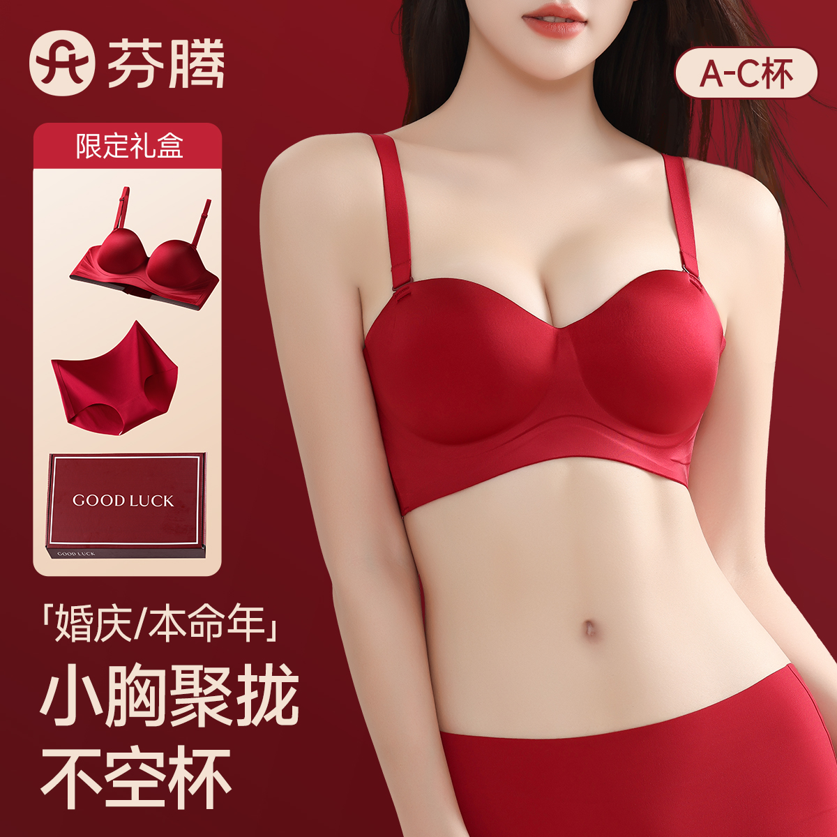 芬腾本命年红色内衣套装女小胸聚拢性感收副乳防下垂文胸无痕美背