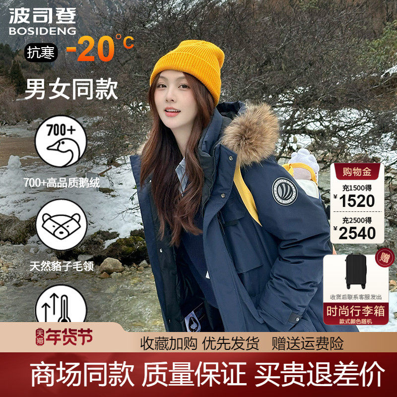 波司登极寒鹅绒服男女同款加厚防风中长款连帽中山青羽绒服2317