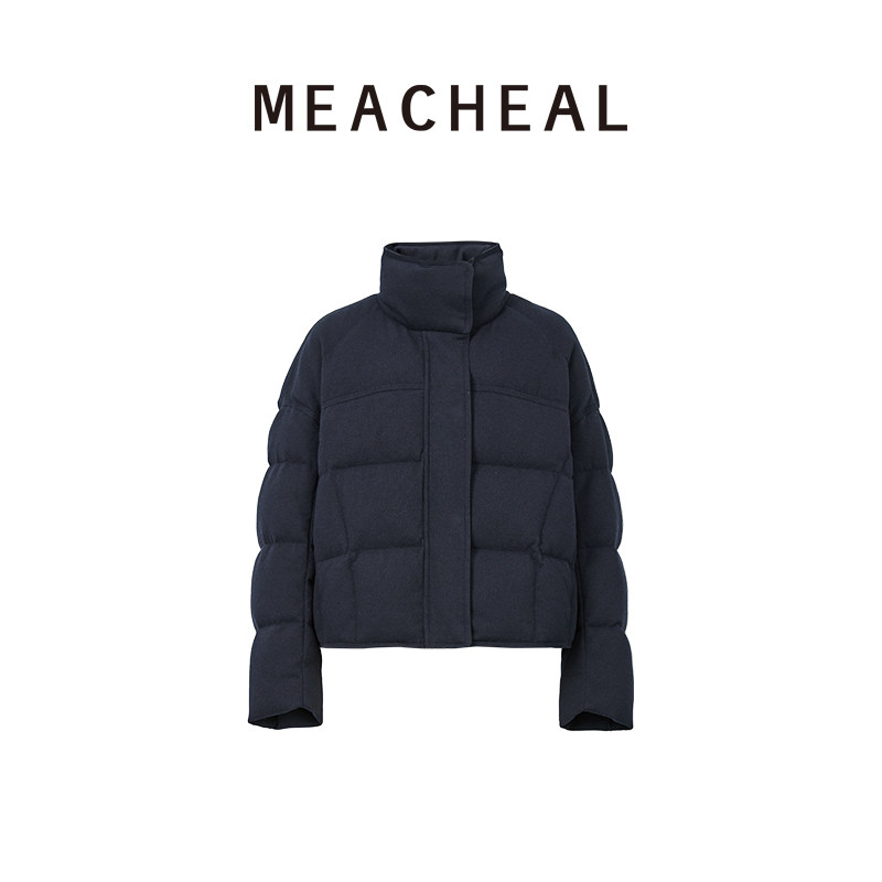 MEACHEAL2025冬季新款气质短款简约95鹅绒百搭修身藏青羽绒服