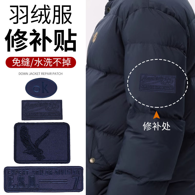 藏青羽绒服补丁贴修补无痕修复自粘布面破洞贴片时尚衣服免缝布贴