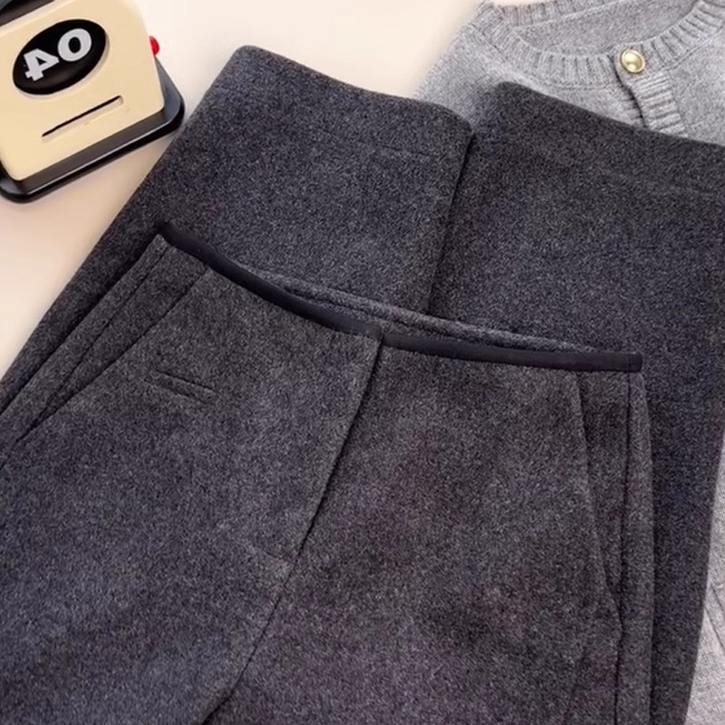 雅鹿羊毛呢直筒裤子女春秋冬2025新款加绒休闲高腰显瘦中年妈妈裤